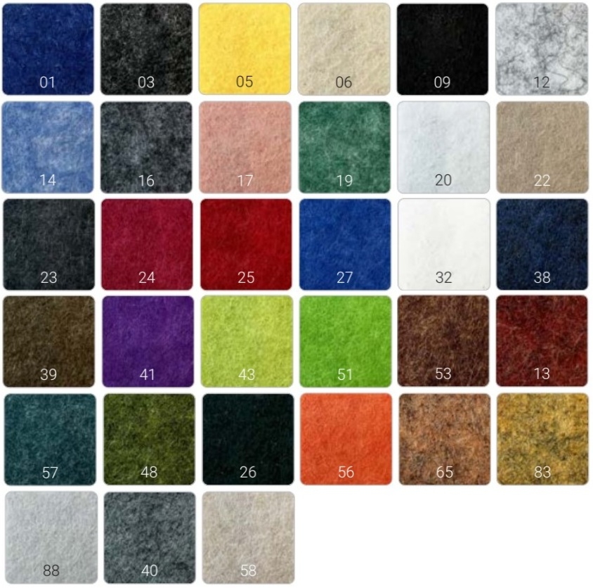 - Binnenwanden en plafond in 9mm akoestisch PET-vilt standaard in kleur Silver grey (ECO-screen 12).