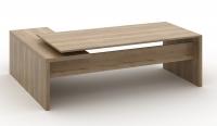 Bladen, onderstel en bijzetwand uitgevoerd in melamine, dikte 38mm Halifax eiken. Kunststof stootranden, dikte 2mm.